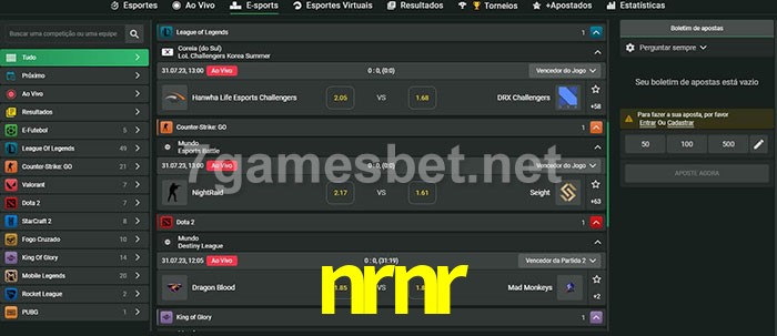 O nrnr oferece uma grande seleção de opções de apostas em e-sports com probabilidades competitivas